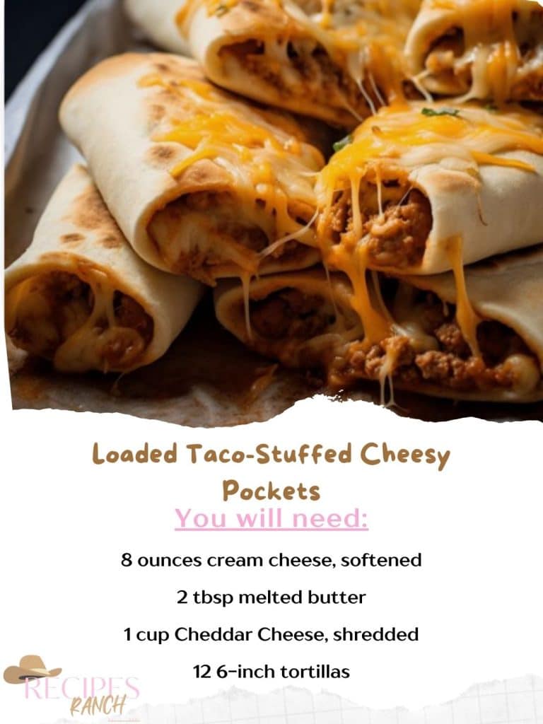 Introduction Satisfy your cravings with our mouthwatering Loaded Taco-Stuffed Cheesy Pockets! These handheld delights are packed with all the flavors of a classic taco, including seasoned ground beef, gooey melted